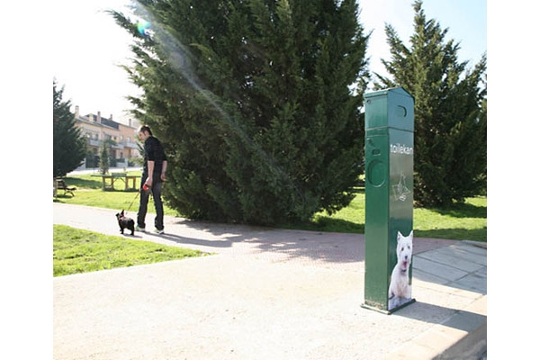 Material: Acero galvanizado. Cubeta interior para residuos con sistema de cierre automático. Dispensador de bolsas.
