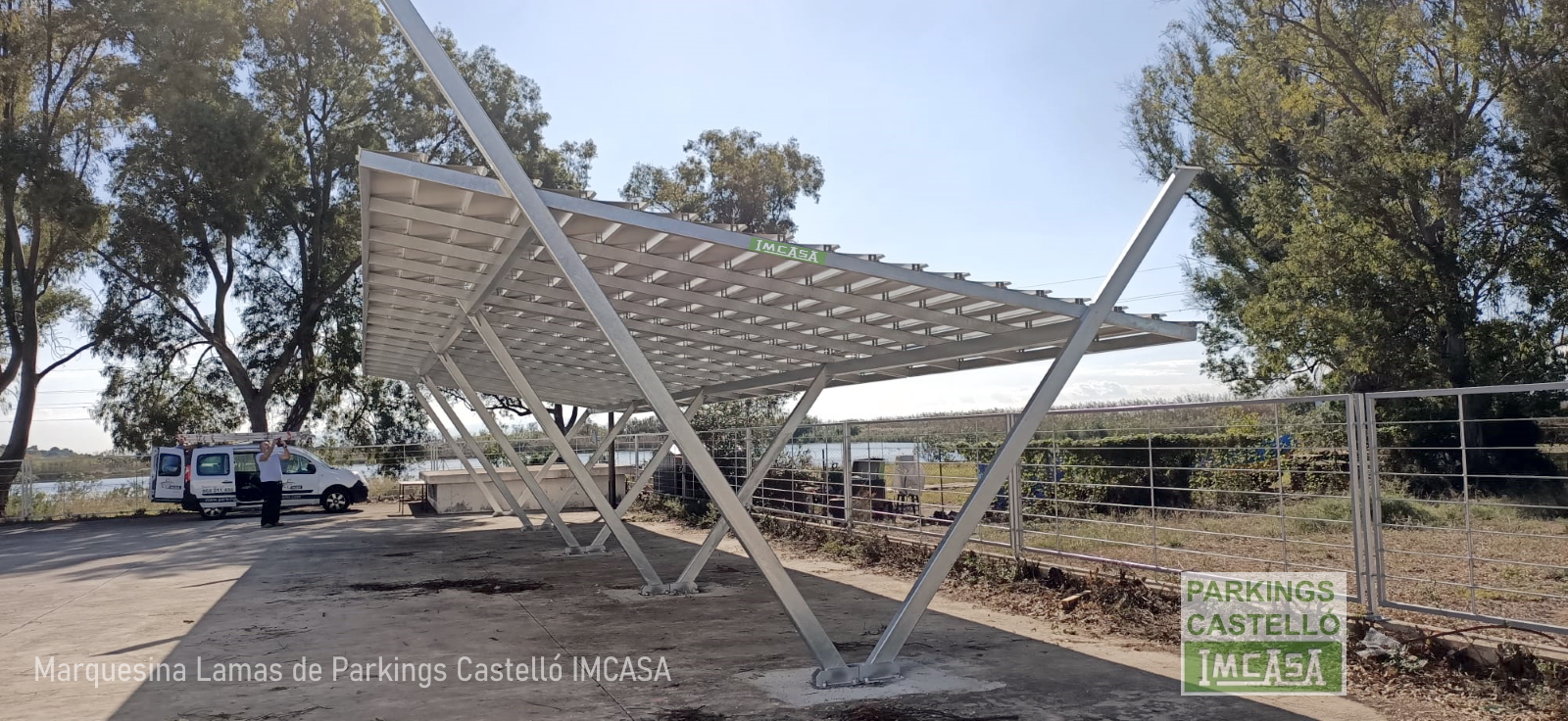 Instalación de marquesina aparcamiento modelo Lamas en Valencia para 8 vehículos.